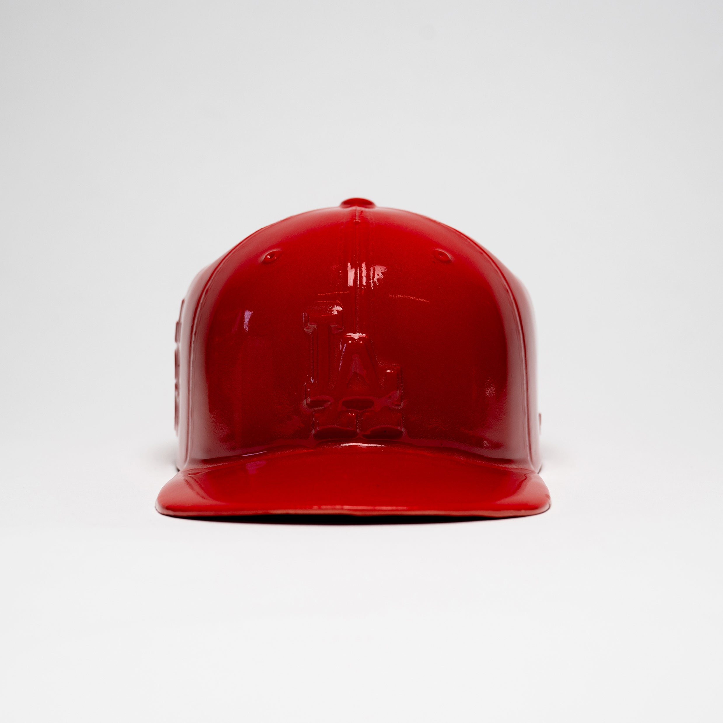 Each ceramic hat is individually crafted and glazed by hand in my studio in Los Angeles, making every piece slightly unique. The embossed LA detail and smooth, reflective finish give it a hyper-real, almost liquid look—like a cap frozen in time.